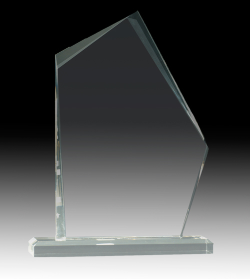Clear acrylic angular shaped award.