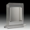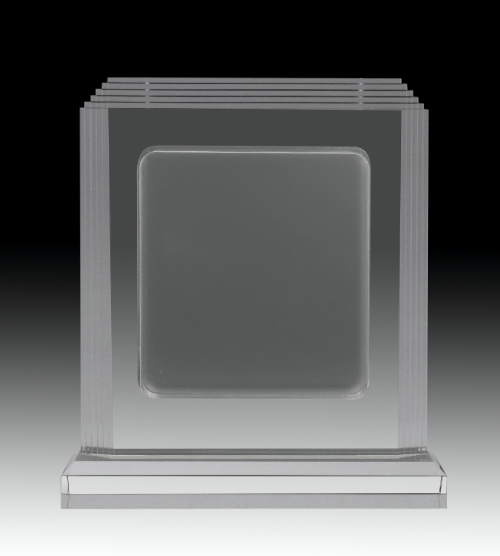 A sleek, modern Award featuring layered acrylic and a recessed square with an silver aluminium backing.