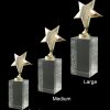 Clear glass rectangle with two patterned sides and a large gold metal star fixed on the top.
