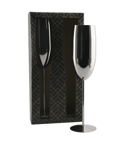 2 x Stainless Champagne Flutes