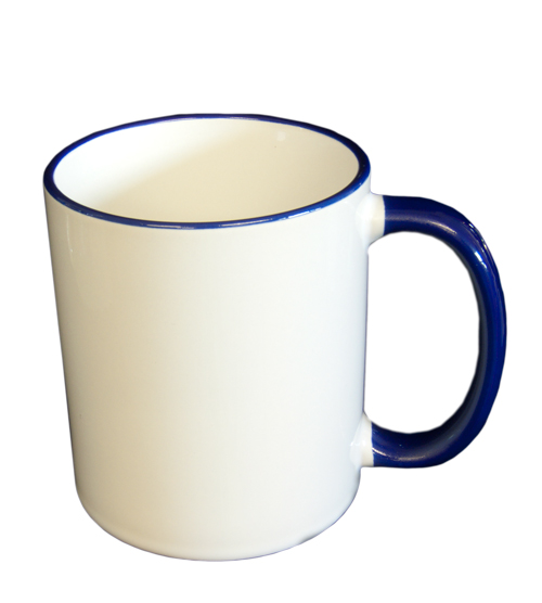 White Coffee mug with Blue handle.