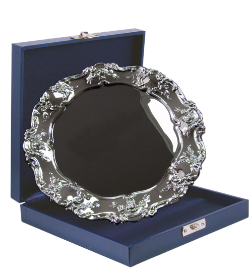 Decorative 11″ Canterbury Tray, made from brass with nickel plating.
