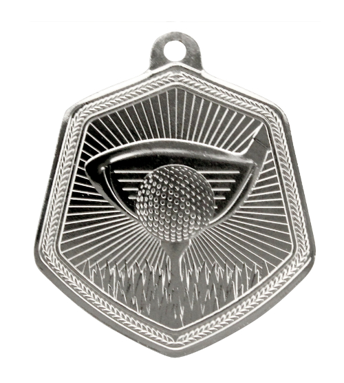 Golf gold, silver and bronze hexagonal medals.