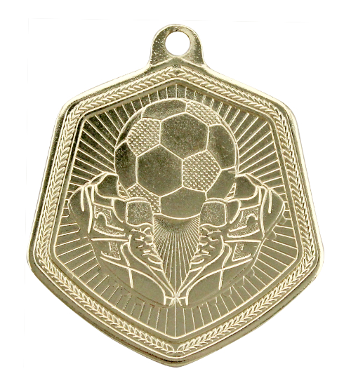 Soccer gold hexagonal medal.