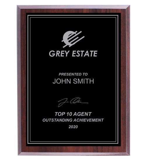 Wooden plaque with a cherry semi gloss finish.