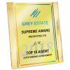 Gold highlight either side of a clear acrylic plaque with a black coating on the back. Includes full colour text or image printed / engraving onto an aluminium plate and fixed to the front of the plaque. Gold, Silver and White aluminium is available to select from.