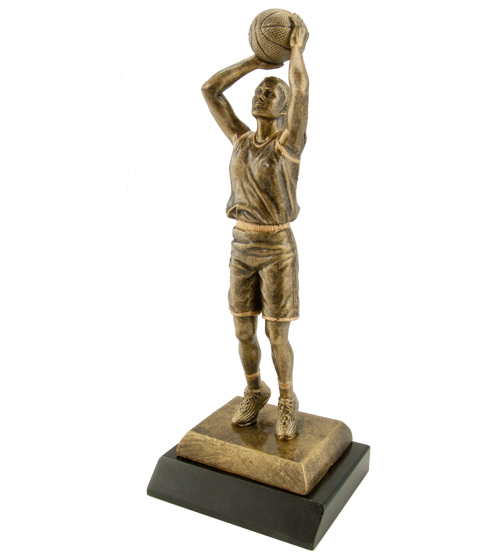 Basketball Female player, antique gold plastic figurine set on a black satin base.