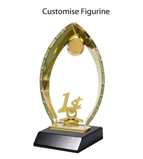 Gold coloured plastic arch with a 25mm dia. space for a centre image, and space for a figurine within the arch.