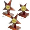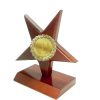 MDF wood star shaped trophy with high gloss, dark walnut finish.