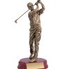 Bronze male golfer on a gloss wood finish base, molded from resin as one unit.