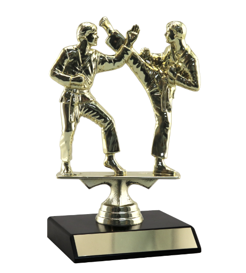 Gold coloured plastic, Male double karate figurine.