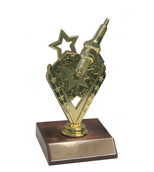 Gold coloured plastic, Spark plug figurine with star motive.
