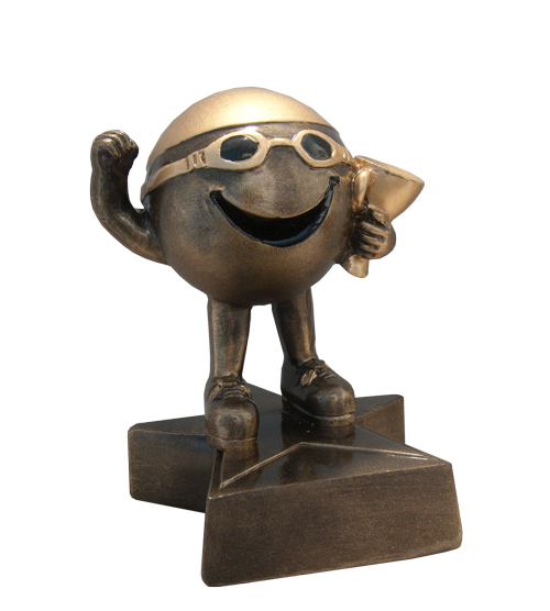 Bronze Mini Swimming figure on a star base, molded from resin as one unit.