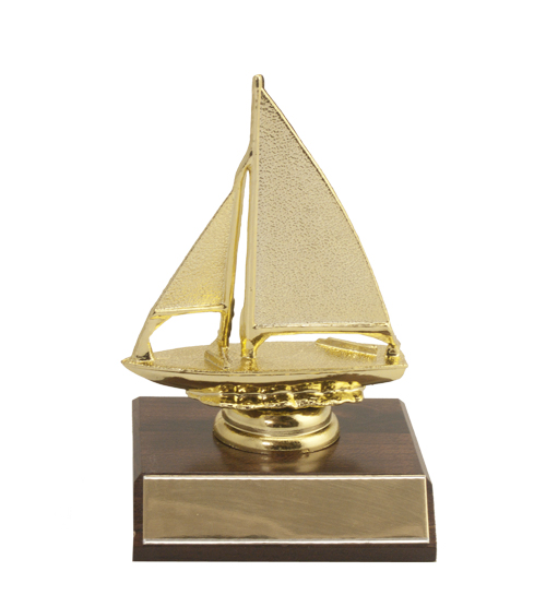 Gold coloured plastic, Sail Boat figurine.