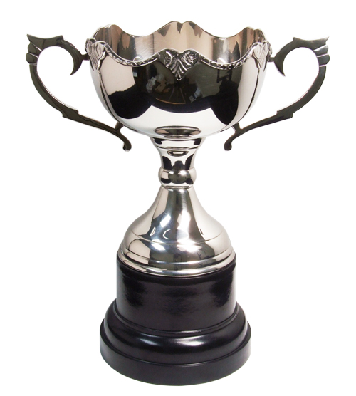 Scallop Rim Trophy Cup placed on a black Bakelite base.