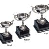 Nickel Plated Die Cast Cup placed on a square, black gloss, plastic base.
